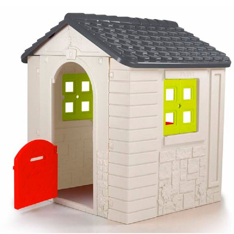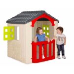 Casita Wonder House de FEBER con puerta delantera que incluye buzón, balcón trasero y dos ventanas que abren y cierran.