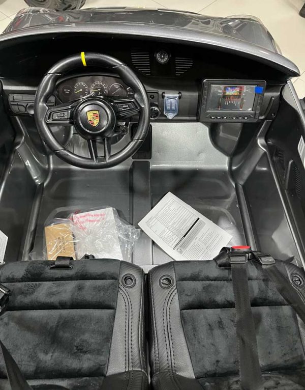 Diseñado para jóvenes entusiastas con gusto por lo sofisticado, el Porsche 911 cuenta con detalles auténticos , desde brillantes faros y luces traseras LED hasta pintura en aerosol metalizada y llantas de aleación personalizadas. En el interior, su hijo encontrará un lujoso asiento de cuero , alfombrillas y una pantalla táctil de infoentretenimiento con sonidos de arranque del motor y reproductor multimedia integrado para reproducir audio por Bluetooth, MP4 y SD/USB.